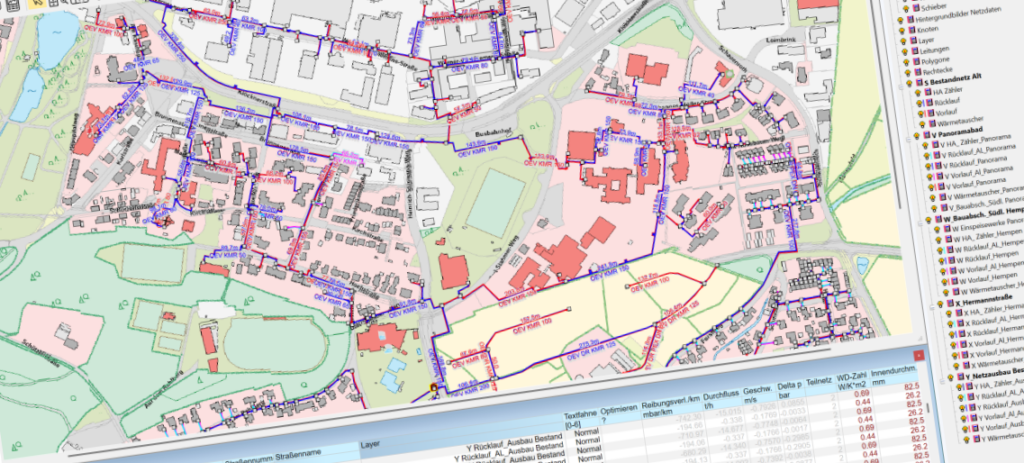 Wir setzen auf leistungsfähige Planungsinstrumente, so erfolgt z. B. Netzplanung mit Einsatz von STANET®, einem Programmsystem zur stationären und dynamischen Berechnung von Ver- und Entsorgungsnetzen. Ziel ist eine streckenoptimierte Planung des Leitungsnetzes die zugleich auch die Details des Geländes im Blick hat, um Teilstrecken, die einen hohen Verlegeaufwand erfordern, zu vermeiden. Zudem gilt es, die Anbindung an vorhandene Versorgungsleitungen zu optimieren.